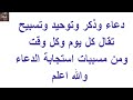 دعاء وذكر وتوحيد وتسبيح تقال كل يوم وكل وقت ومن مسببات استجابة الدعاء والله اعلم