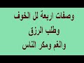 وصفات اربعة لل الخوف وطلب الرزق والغم ومكر الناس